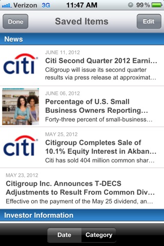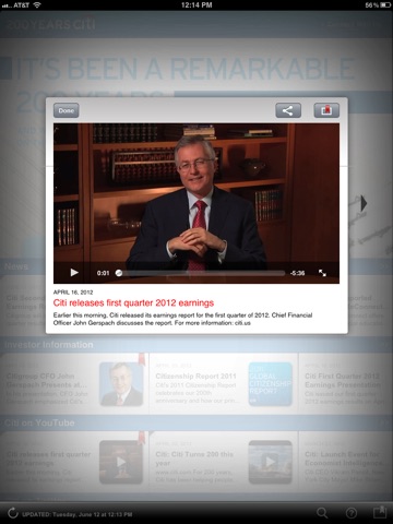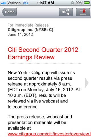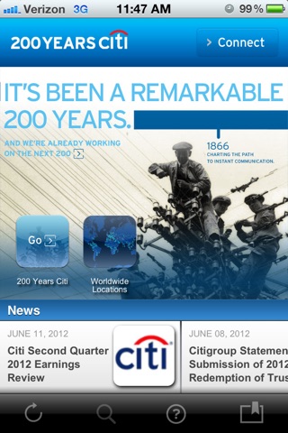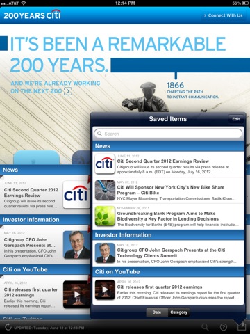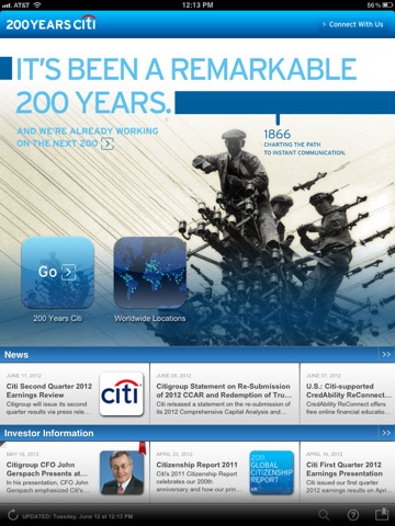 Thank you Citi for providing all investors with this convenient and informative app. This app came in a right time when Citi is getting back on track to become profitable again, and investors should know about it. In a future I would like to see this app enhanced to provide more interactive materials, integration with social media and social networking sites. Also, investors should be able to search here for various Savings and investments deals offered by the company, post questions and answers, get real time news and posts, sign up for accounts.