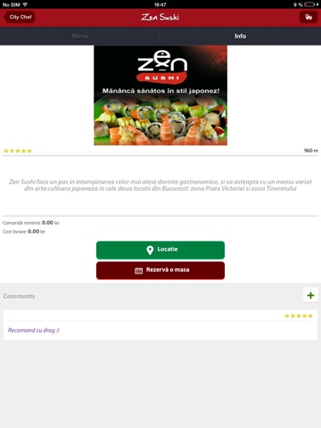 Nu numai ca ai mancarea preferata la cateva tap-uri distanta, dar cu City Chef poti face si rezervari la restaurantele tale preferate. Totul intr-o interfata foarte prietenoasa si usor de folosit.