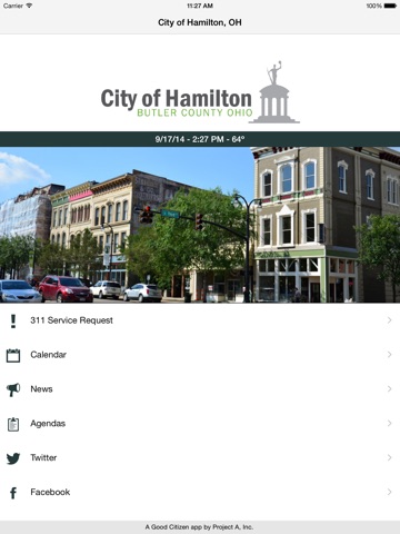 The City of Hamilton app is a free download that gives residents and visitors easy access to city government information. The app includes official city news, calendar, agendas, and a "311 Service Request" feature to quickly report problems with streets, parks, and other other city-related items. Download for free today.