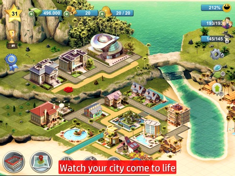 Discover new islands, expand your town and city life, keep your citizens happy, manage transportation and enjoy a virtual world full of quests! Join over 50 million players that played the City Island series so far. The game is highly rated for its awesome detailed graphics and realism. Place buildings and decorations strategically to keep the cash flowing and your city growing. Watch your islands come to life, in the snow, rain and sun, night and day! Manage and expand your city on the go – both online and offline playable.