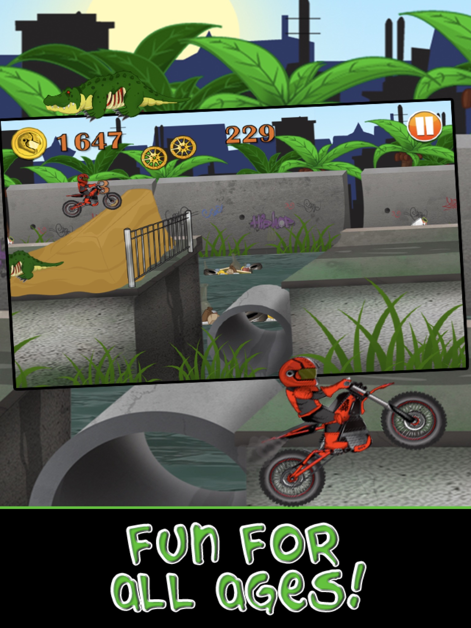 - Game Center enabled so you can challenge your friends and try to become the top bike rider