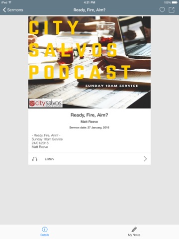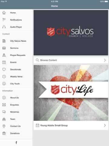 Loaded with features, with this app you will never miss what is happening at City Salvos ever again. The app is perfect for you whether you are at home or on the go... City Salvos in the palm of your hand!