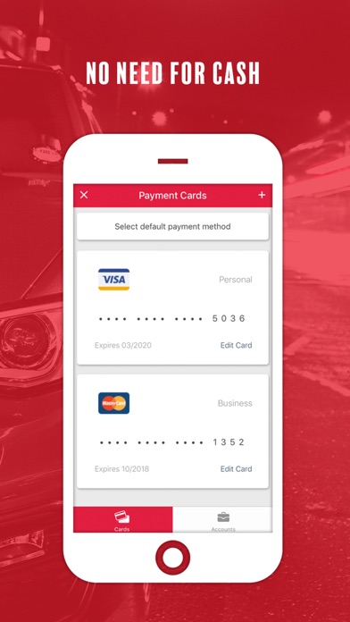 Payment can be made by cash or card – multiple cards can be stored for business & personal use