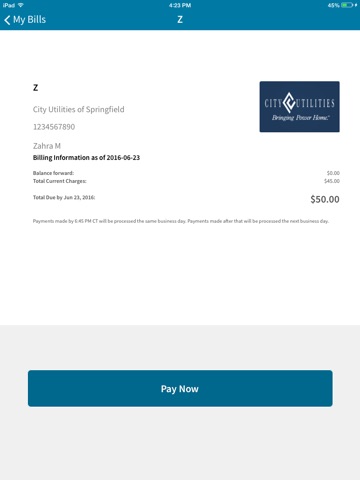 Looking for a fast and convenient way to pay your City Utilities of Springfield bill? City Utilities of Springfield Mobile helps you pay your bills on time and manage future payments from the convenience of your iPhone, iPod touch, and iPad.