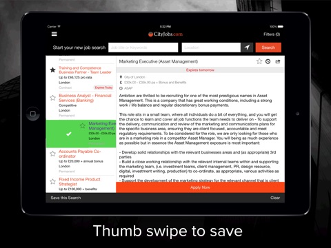- Swipe to save or un-save jobs and swipe between job descriptions