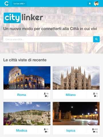 CityLinker è il nuovo modo per connetterti alla Città in cui vivi. Entra subito nel social network della tua città: scopri chi vive intorno a te, discuti e condividi con loro tutto ciò che accade in Città.