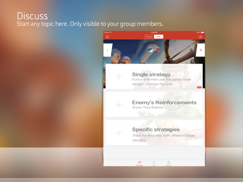 ● Create a group and invite your clan mates to join. Send strategies and star counts to keep group members informed of the latest news.