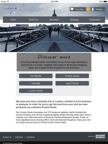 Clarendon’s free London Guide App is endorsed by the Mayor of London Boris Johnson and will enable you to take full advantage of everything London offers including - What’s On in London, eating out, museums and galleries, sights and attractions and an extensive video guide.