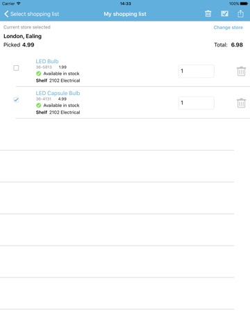 - Add products to a shopping list and check off your purchases when you are in the store.