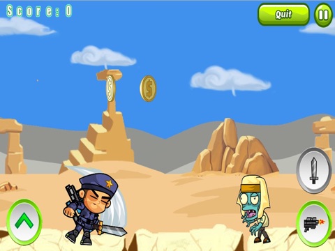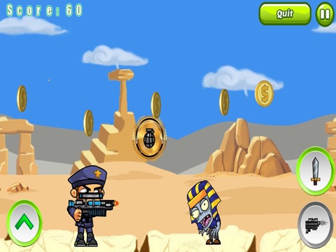 During the run, he will have to collect gold coins to score. There are also special items to help in the fight zombies, too.