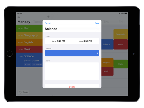 jadore cette appli parfaite pour un lycéen (notifications envoyés en inter-cours pour indiquer la salle du prochain!) je la recommande vivement à tous ceux qui ont la flemme de sortir leur emploi du temps à chaque fois !