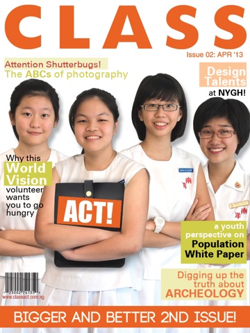 ClassACT! is the magazine that focuses on secondary school life and school-centric things that are of interest to todays secondary school student. It aims to spread positive messages of empowerment and inspiration for secondary students through highlighting outstanding and well-rounded students from Singapore as well as around the world. It is our belief that youths learn best through peer-to-peer learning and by looking at other youths as role models.