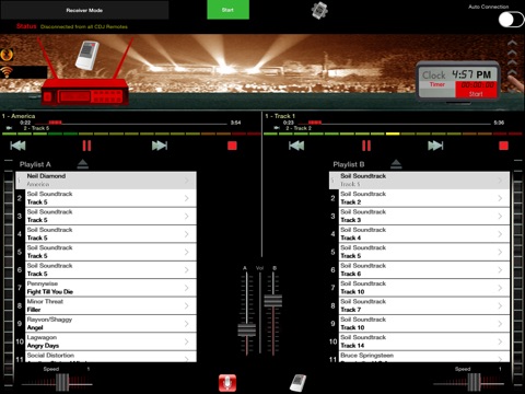 - Receiver Mode: (Single Device) Controls the Music Players, Playlists, Microphone and outputs the mixed audio.