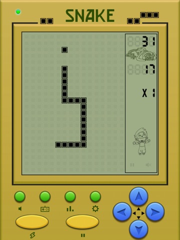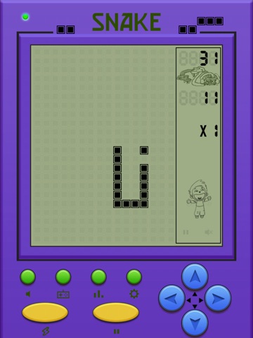 This is a remake of the original Snake, complete with dot-matrix display and monotone sounds.