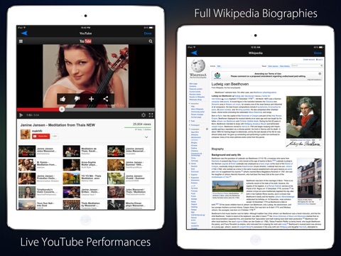 Search and organize your favorite pieces with favorite list. Fall asleep with sleep timer. Plus, easily discover and learn more with YouTube live performances and Wikipedia composer info for each masterpiece right in the app.
