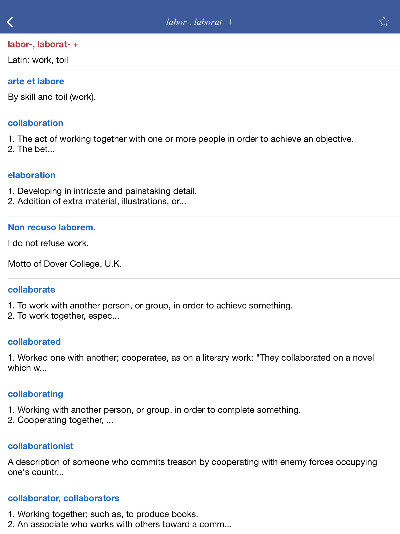 If you are looking for a complete list of classical roots and derived words and phrases, this is the app that you want.
