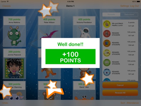 Simply create a virtual classroom of your pupils using our quick upload process and you can start to reward your pupils in real time, instantly reinforcing good behaviour. With one tap of your smartphone or tablet you can transform fun and effective reward stickers into an interactive experience for the whole class.
