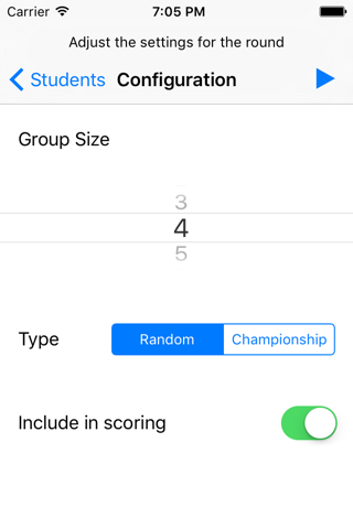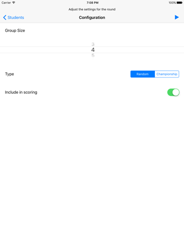 - After numerous "random" rounds, where students are grouped randomly, you can choose to start a "Championship" round, where the players are grouped by score. Top scoring students in previous rounds are grouped with other top scoring students