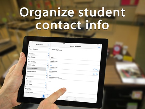 • easily add student information: email addresses, birthdays, emergency numbers, pictures