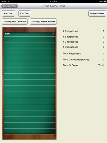 Classroom Trivia is an application that allows for teachers and students to have interactive classroom quizzes on iPhone and iPad devices.