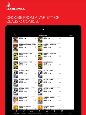 Clawcomics, a vintage comic archive in your pocket! Read and experience comics on your iPhone, iPad, and iPod touch.