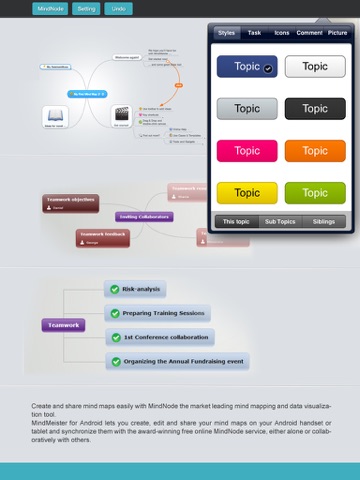 Highlight your thoughts with style and let your mind map auto-magically arrange itself, so nothing gets in your way.