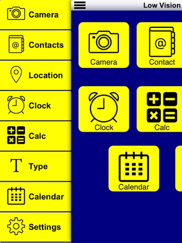 Multi-featured application for people having Low Vision! This app has the option to view enlarged Contacts, Camera, Calculator, Clock and Current Location features with bold and low vision friendly color themes to easily access contents from the phone.