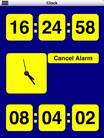 Bigger clock and alarm with low vision friendly fonts & colors.