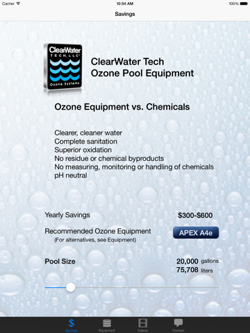 ClearWater Tech Ozone Pool Equipment app showcases the complete line of ozone generators designed for swimming pools.