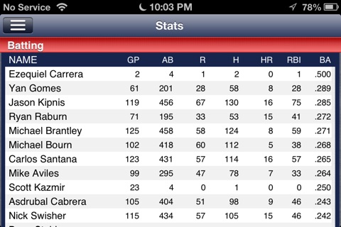 I would give this app 5 stars if it had a stat page. I think wed all appreciate something where we can take a quick at batting average, ERA, slugging percentage, etc. Other than that, its a great app for Tribe fans! Roll Tribe!