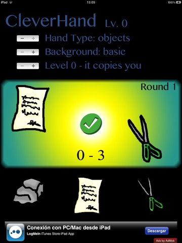 The tradicional Rock-Paper-Scissors game (Ro sham bo!) with different difficulty levels (IA intelligence). It also offers you the opportunity to change the background and the pictures of rock, paper and scissors.