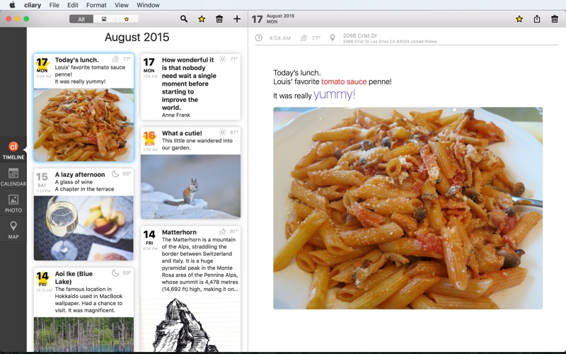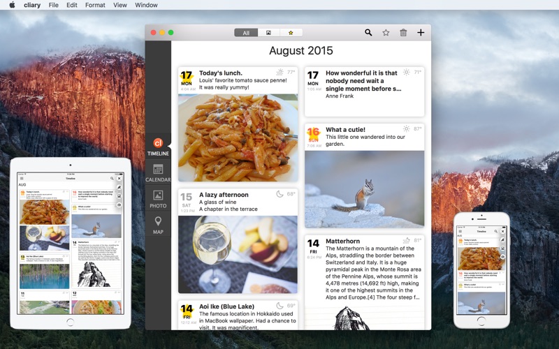 cliary stores your journals on iCloud. Write down your thoughts and experiences and take them anywhere with your iPhone, iPad or Mac.