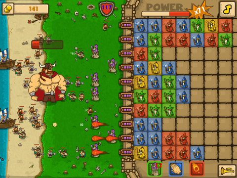 The story happened at the Viking age. You castles, villages and lands are being attacked by Vikings. Your job is to defeat them with your wisdom before they come to your wall. To achieve this, connect the more heroes together and become more powerful. Build Towers strategically and use the Palm just in time for defense! Give the vikings a surprise attack with the Comets after they put their feet on your land! Remember again, don’t let them get close to your wall! If they align on a row, the Laser magic from Canons can clear them instantly. Last but not least, enhance your power with the Gold taken from the vikings.
