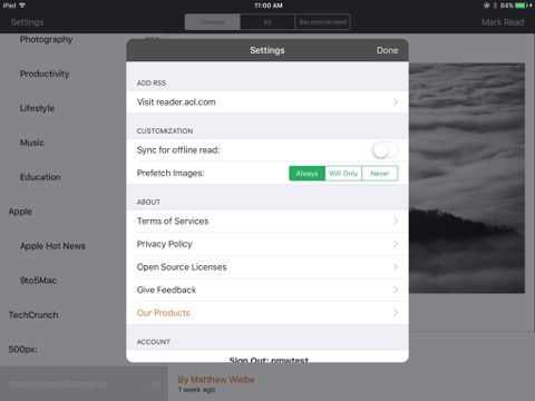 The app is developed by New Mobile Way Inc. through AOL Reader public API, AOL Inc. is not affiliated with this app or New Mobile Way Inc.