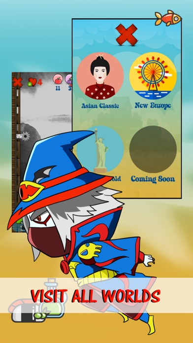 Jump, collect magic spheres, open new characters and enjoy different worlds of the game CLIMBING NINJA.