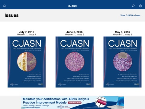 This free application provides access to publish-ahead-of-print (CJASN ePress) abstracts, articles, and full text issue articles, complete with images and tables, immediately upon publication.