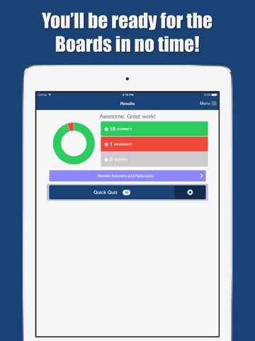Our "Quick Quiz" is a perfect way to master everything the boards can throw at you. Quick Quiz focuses on closing your knowledge gap by showing you only the questions you havent correctly answered.
