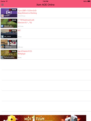 +Ứng dụng có thể xem trực tiếp những trận đấu, giải đấu AOE đang diễn ra tại Việt Nam và nhiều nước khác trên thế giới.