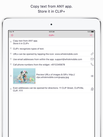 すごいアプリだと思います。クリップボードに貼られたものを自動で記録してくれるアプリなのですが、幅広い応用性があります。 例えばdraftsで思いついた事をメモしましょう。あなたはそれをウィジェットに表示するためにアプリに送る必要はありません。Copy to Clipboardするだけです。それだけでメモの中身はこのアプリによって記録されます。つまりウィジェット上でメモを確認する事が出来るようになるのです。登録可能文字数は非常に多く、ウィジェット上では「...」と表示されてしまいますがちゃんと全文記録してくれます。勿論ウィジェット上から削除する事も出来ます。 記録されたものはウィジェット上からタップする事でコピーする事が出来ます。更に電話番号、メールアドレス、URL、ロケーションが登録されていた場合対応するアプリをウィジェットから起動する事が出来ると至れり尽せり。 久々に新鮮な驚きを感じました。愛用させて頂きます。