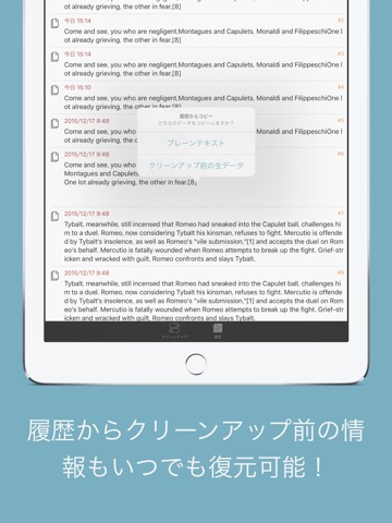 また、クリーンアップ前のデータを復元できる履歴機能も完備。