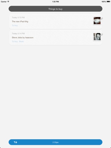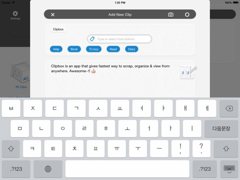 Clipbox is an app that helps you scrap and organize text and photos. You can also use it on taking memos super fast and easy way. It is universal app that can be used on iPhone and iPad. Your clips will be shared between your devices through iCloud.