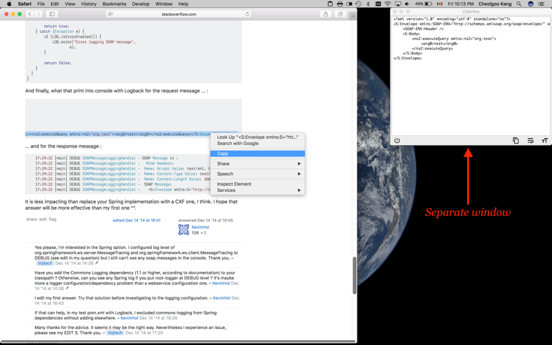 ClipFormat is a menubar app that monitors your Macs clipboard. Once you copy a chunk of text thats supported by ClipFormat then it will pretty print it for you automatically. Just click on the menubar icon and you can see a nicely formatted version of what youve copied.
