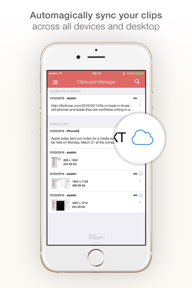 - Automatically sync your clips across all your devices with iCloud support