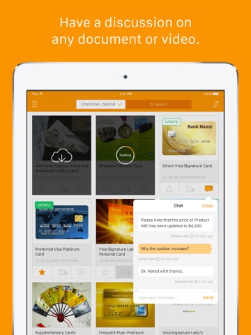 Cloard Kit is the best companion for mobile sales and service professionals in the field. It provides up-to-date access of all of your companys documents and presentations instantly, so you can effectively present product information to your clients on-the-go and anywhere.