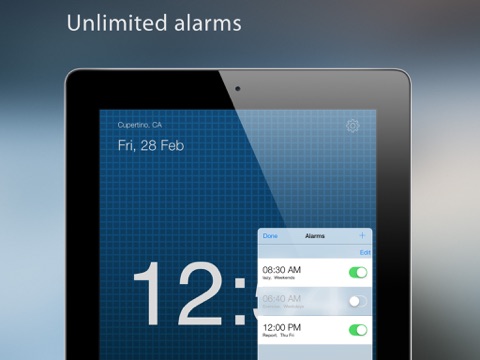 - Unlimited alarms featuring ten different alarm tones, personalised labels & repeat alarm options