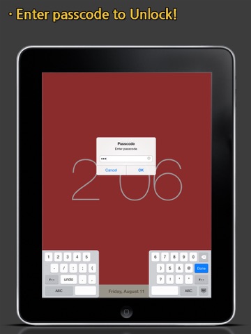 ● To unlock the app, touch the clock screen with TWO FINGERS for more than 2 seconds.