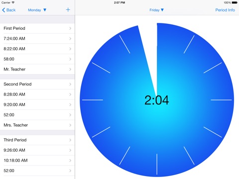 Ever wonder how long until class gets out? Ever had someone ask you what time you get out of first period? Clock Watcher lets you know how long you have left in class or, if you arent in class, how long until class starts!