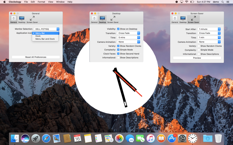 - desktop wallpaper mode with an option for a 2d clock face on top of your existing background
