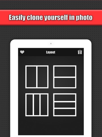 Clone Pic divides your camera into several sections with many layouts to choose from. You can choose to blend these images together creating a flawless looking special effect or make a sharp contrast between the photos to collage multiple images. The possibilities are limitless!
