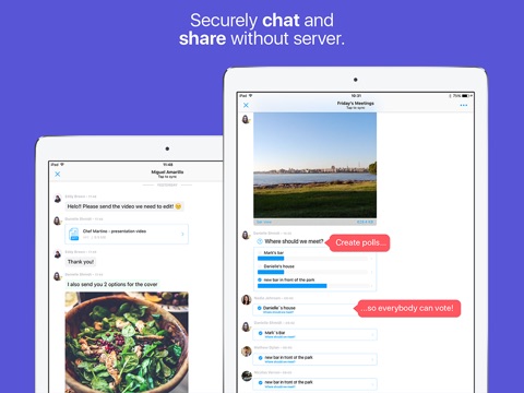 * No servers are involved, no traces behind, all shared content lives on each device only.